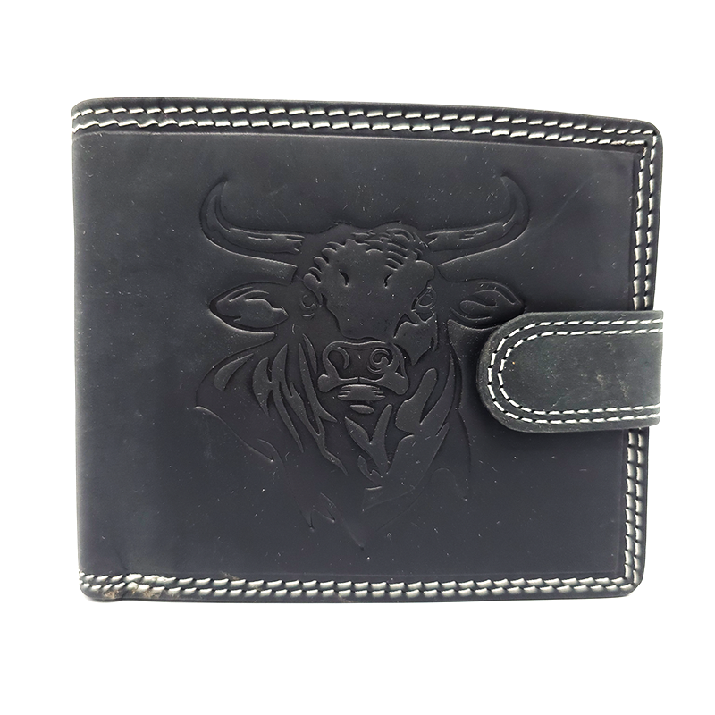 Portofel bărbați cu grafică din piele naturală cu capsă – Câine Pitbull negru