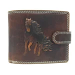 Portofel bărbați cu grafică din piele naturală cu capsă – Cal mustang maro închis