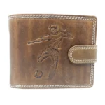 Portofel bărbați cu grafică din piele naturală cu capsă – Fotbal maro