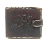 Portofel bărbați cu grafică din piele naturală cu capsă – Tractor maro închis