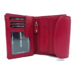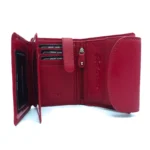 Portofel damă din piele naturală cu capsă – model rotund, roșu
